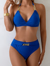 Conjunto de Bikinien Color Sólido con Detalles de Cadena Dorada