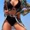 Conjunto de Bikini con Estampado Tropical y Kimono- 3 piezas